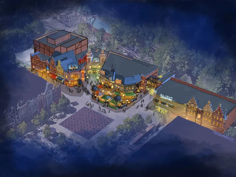 While making my way back towards The Ride to Happiness, I passed the biggest—and perhaps most ambitious—change in the park’s history: the massive renovation of the Main Entrance Plaza. The old train station, the iconic FC De Kampioenen Café, and several dining locations have made way for Plopsa Plaza, the largest expansion in the 25-year history of Plopsaland Belgium. This isn’t just a minor face-lift; Plopsa Plaza won’t just feature a groundbreaking new attraction—the Flying Cinema, Belgium’s first Flying Theater where you’ll soar over Europe with Maya the Bee—but also a brand-new Grand Café serving authentic Belgian delicacies, a state-of-the-art bowling alley, and an immersive arcade hall to keep the fun going even after the coasters close.